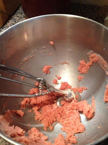 I use my small Pampered Chef scoop to form the balls and place then on a cookie sheet lined with wax paper or parchment.