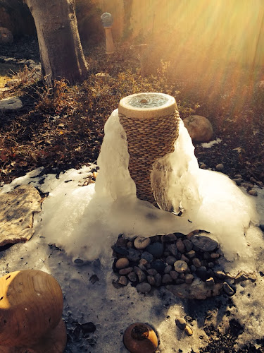 I just LOVE this picture!!! It looks like heavens rays are reaching down and touching the fountain. This is the memorial fountain I put in my backyard garden to celebrate Jeff's first Birthday in Heaven (August 17, 2013). It is surrounded by 'Memorial stones" from friends and family. I enjoyed it so much last fall that I didn't winterize it. I have really enjoyed it with the cold weather because not only is the ice sculpture beautiful it is a haven for the birds. Miss Ella says...Tweet, Tweets!! We stand at the laundry room window and watch them when she is here. I love just stopping and meditating on the birds and how God has created such beauty for us to see if only we take time to look.